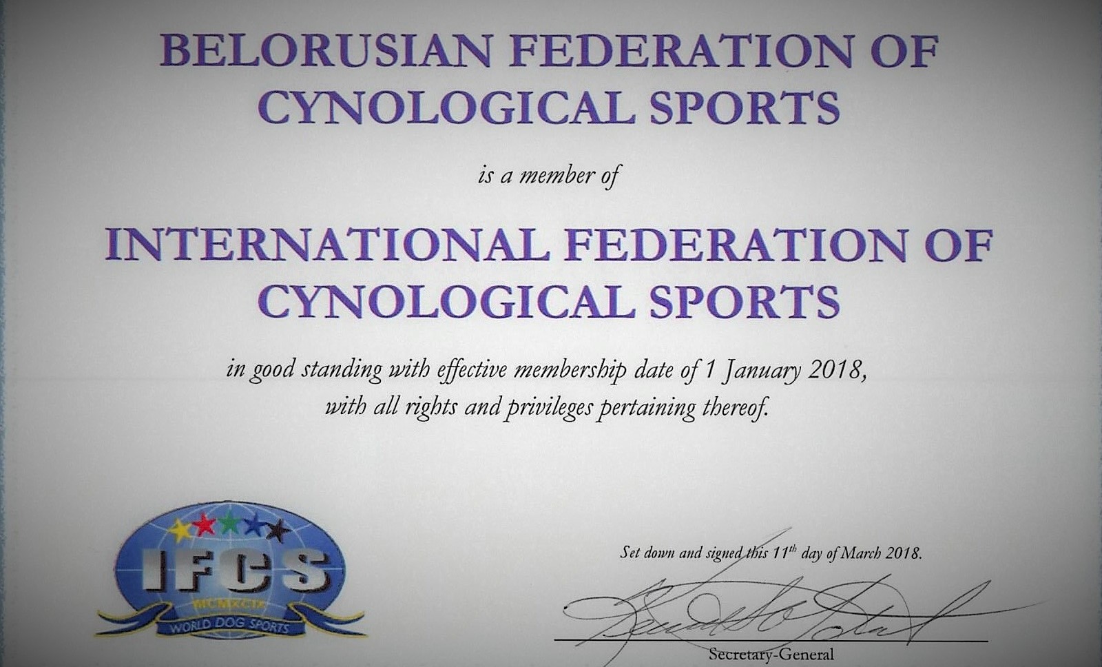 Сертификат о членстве в IFCS